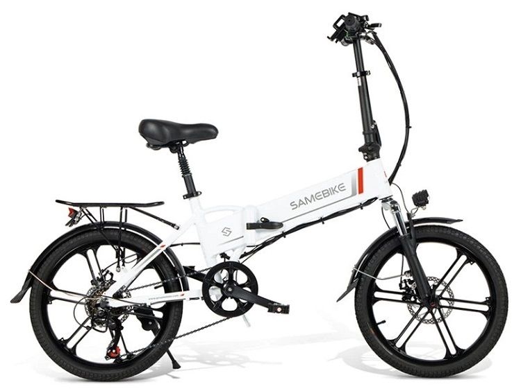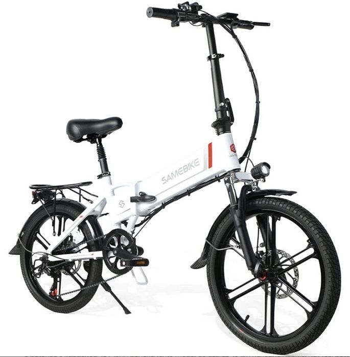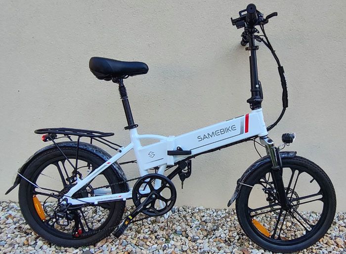 SAMEBIKE 20LVXD30 je skladací elektrický bicykel s 20″ kolesami, 250W motorom a 48V batériou s kapacitou 10,4 Ah.