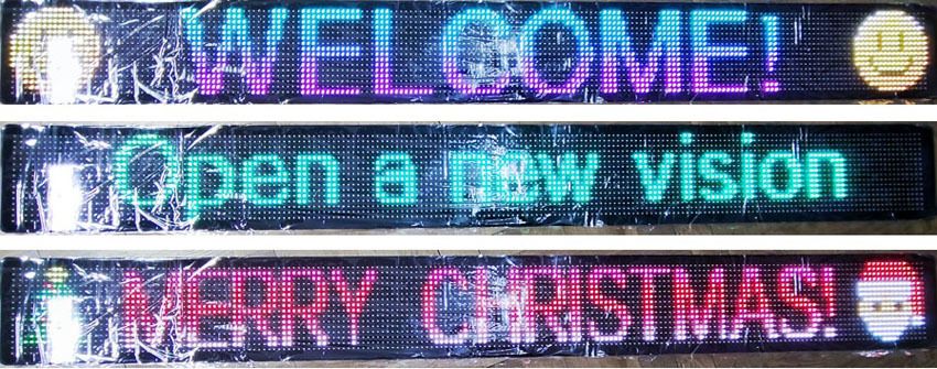 Najnovšia plnofarebná programovateľná svetelná LED tabuľa reklamný PÁS pútač displej s rozmermi 176 x 19,2 cm s diaľkovým ovládačom. Priemerná spotreba: 6W.