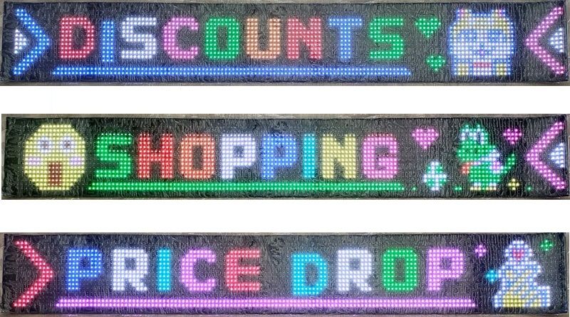 Flexibilná ohybná programovateľná FULL COLOR farebná reklama LED PÁS 176x19,2cm s diaľkovým ovládačom
